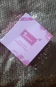 The product has a baby powder scent, but it works well otherwise. It's a bit more powdery than I expected, yet still delivers a nice shimmer.