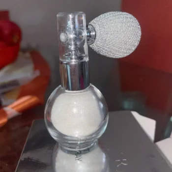 i’m really impressed with this highlighter powder spray. it gives a beautiful, radiant finish that looks great on both face and body. the application is super easy and the glitter is fine, giving a subtle but noticeable glow. it lasts all day and doesn’t smudge or fade. i love using it for nights out or when i want to add a bit of extra sparkle to my look. it’s also great for highlighting specific areas like shoulders and collarbones. this product has definitely become a must-have in my makeup bag. highly recommend it.