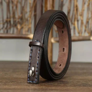 1.5CM Thin Leather Belt with Luxury Copper Buckle – Slim & Stylish Waist Belt