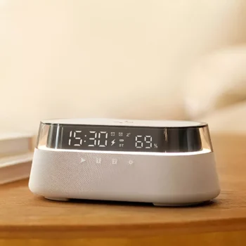 Bluetooth Speaker with 1800mAh Battery, 15W Wireless Charging, Digital Clock & Night Light