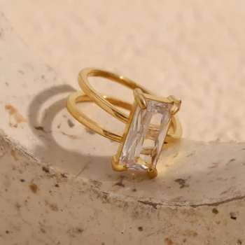 18K Gold-Plated Wide Face Striped Ring with Cubic Zirconia Inlay