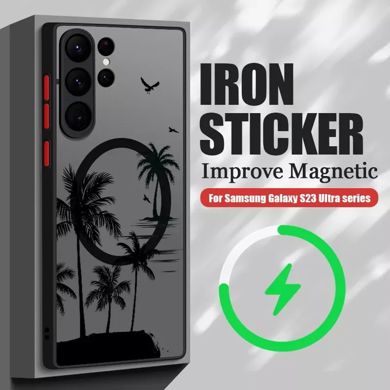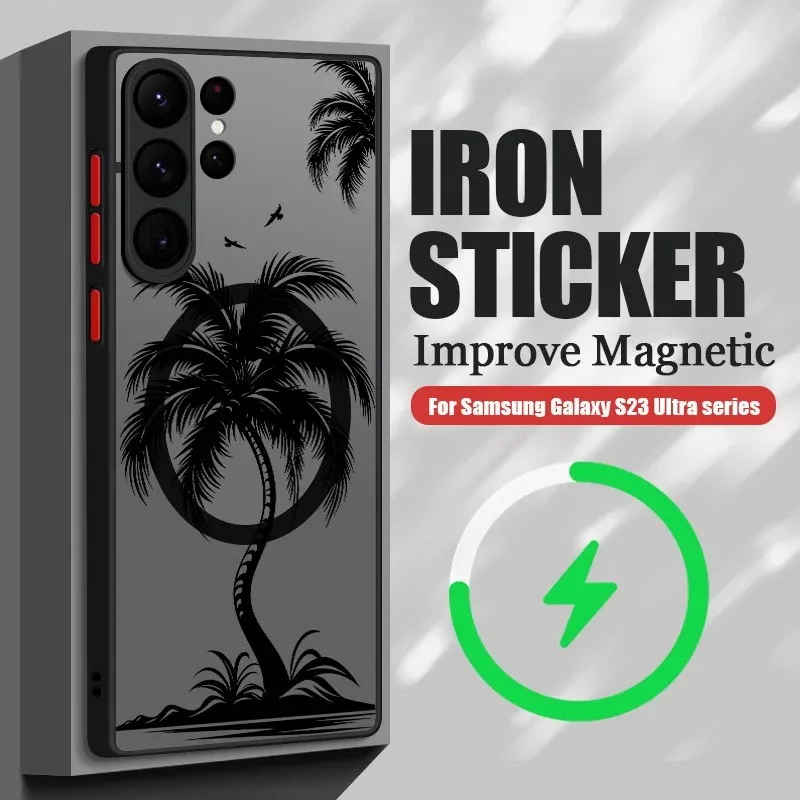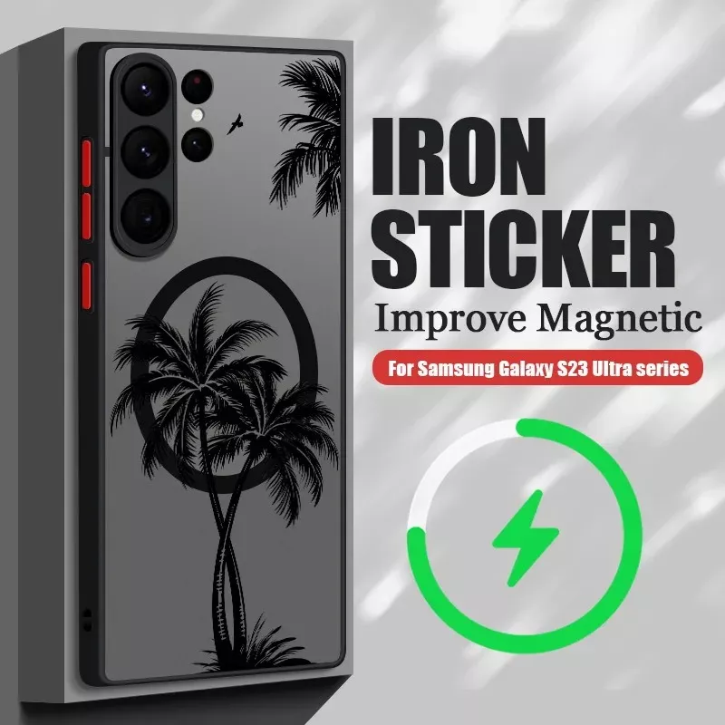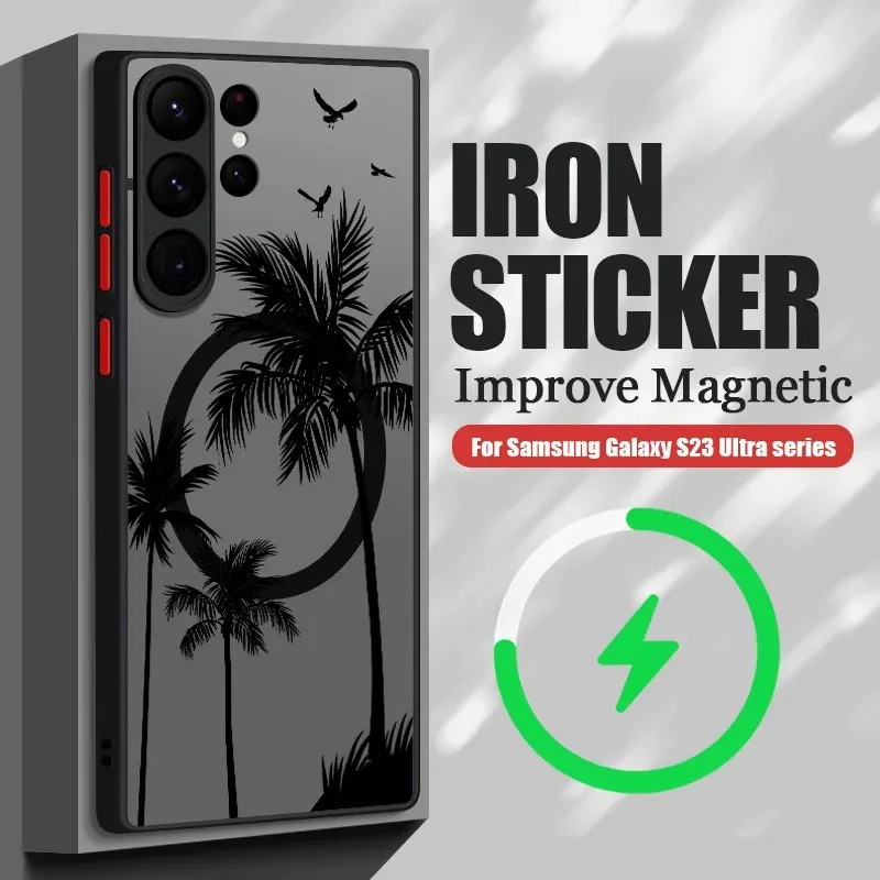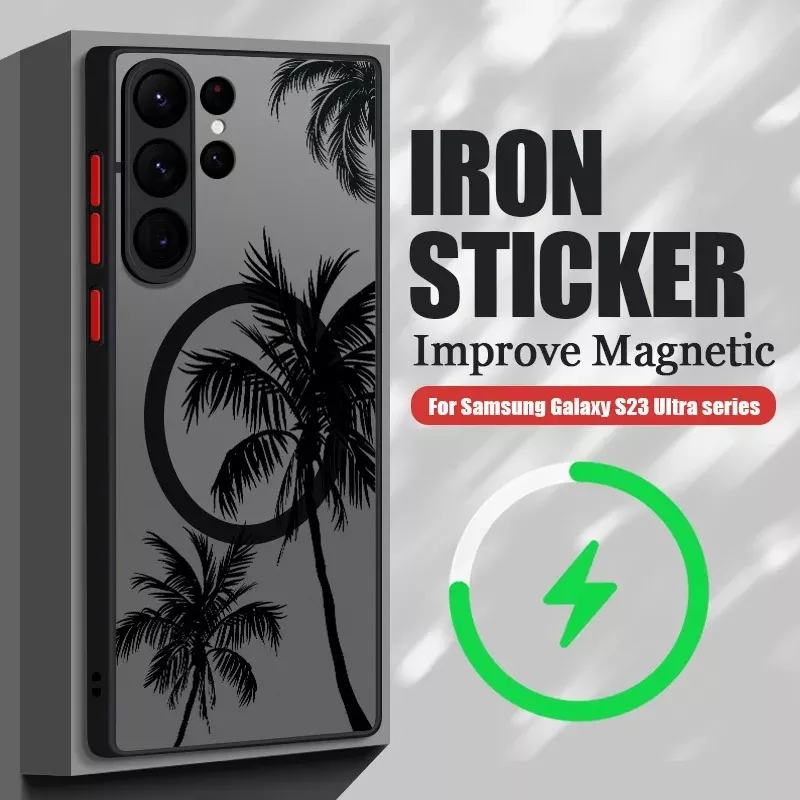 Add a touch of tropical flair to your Samsung Galaxy with this magnetic coconut palm patterned case. Combining elegance with functionality, this hard matte back cover is designed to protect your phone from scratches, dust, and daily wear. The case is compatible with MagSafe wireless charging, making it a convenient and stylish choice for Samsung Galaxy users.