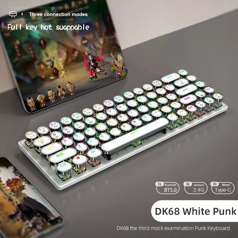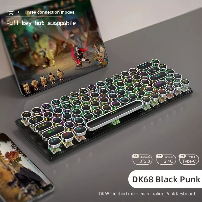 Whether you’re a gamer, a tech enthusiast, or someone looking for a reliable keyboard for everyday tasks, this mechanical keyboard delivers. With Bluetooth tri-mode connectivity, you can seamlessly switch between devices, including your Samsung desktop, laptop, or tablet, with ease. Its dynamic RGB lighting and retro punk design bring personality and vibrance to your setup, while its ergonomic style ensures comfortable use for extended periods.
